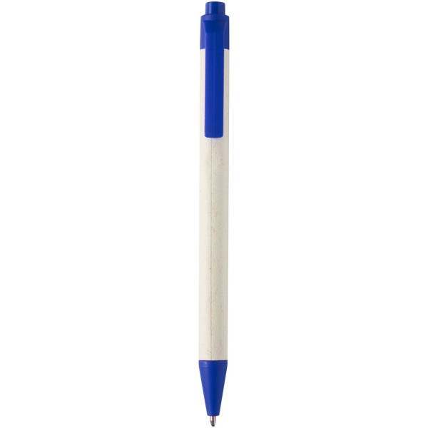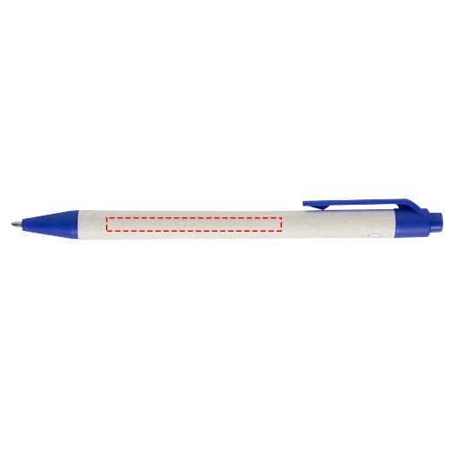 Stylo bille à bouton-poussoir avec un corps fabriqué à partir de briques de lait recyclées (jusqu'à 70 %). Le bouton, le clip et la pointe sont en plastique PLA. Les briques de lait usagées sont collectées, triées, traitées et transformées en papier, transformant ainsi les déchets en quelque chose d'utile.