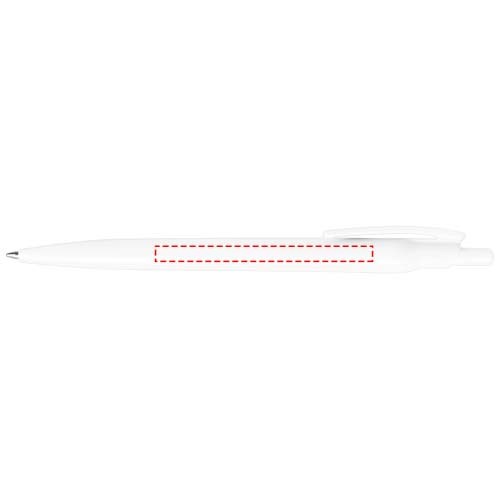 Stylo à bille rétractable en PET recyclé provenant de bouteilles d’eau et de soda de post-consommation (sauf pour la recharge et le ressort). Une bouteille de 500 ml est utilisée pour produire un stylo bille. Comprend une recharge européenne X20 avec de l’encre pour documents et une longueur d’écriture d'environ 2 000 mètres. Également disponible avec une recharge d’encre bleue (107723). Fabriqué en Italie.