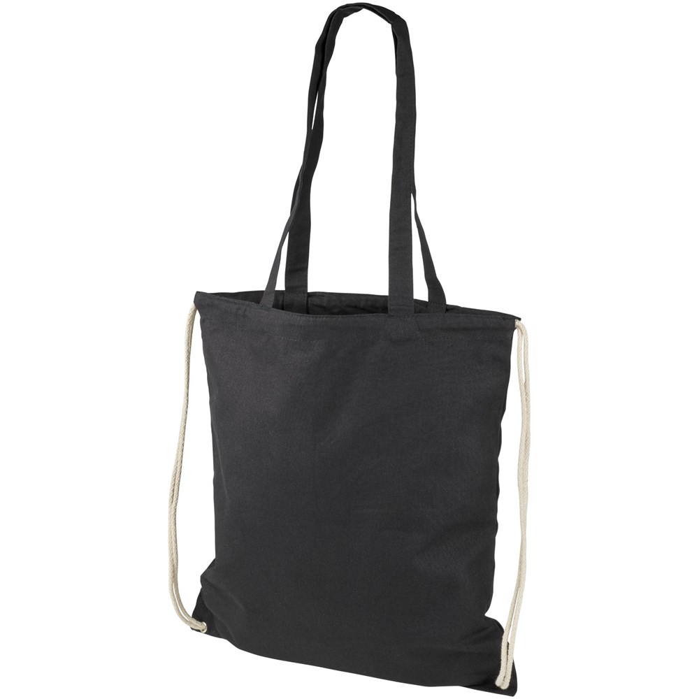 Sac en coton multifonction avec de longues bretelles et un cordon de serrage, à porter comme fourre-tout ou sac à dos. Grand compartiment principal avec fermeture à cordon. Comprend deux bretelles d'une longueur de 31 cm. Capacité : 6 L, résistance aux charges de 5 kg.