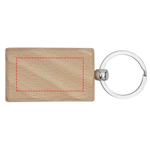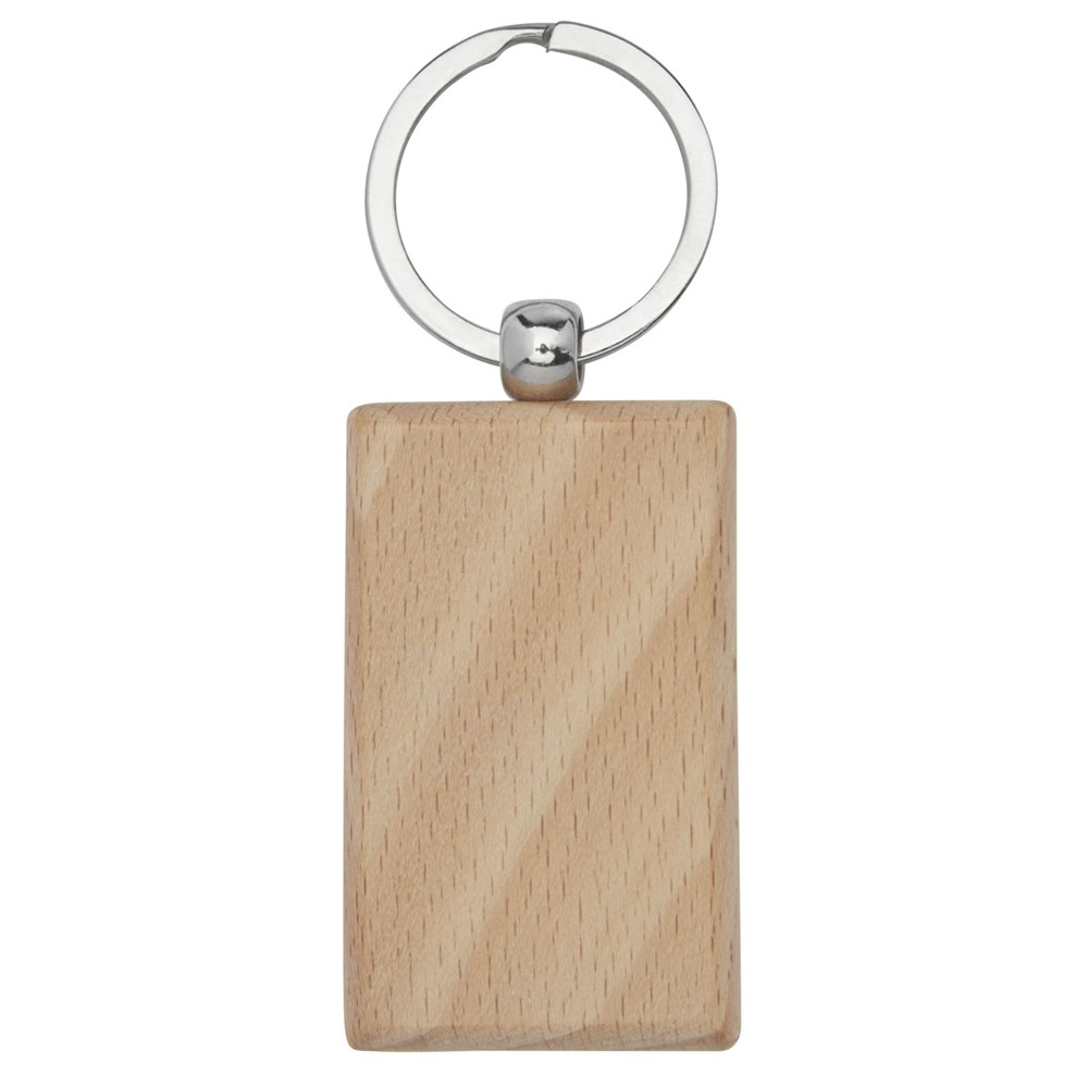 Porte-clés rectangulaire en bois de hêtre, livré dans une enveloppe en papier recyclé kraft brun. Les dimensions du porte-clés sont de 5,5 x 3,5 cm. Peut être gravé.
