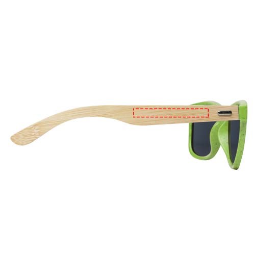 Ces lunettes de soleil durables au design rétro sont le cadeau promotionnel idéal lors des festivals d'été, des événements ou d'autres activités extérieures par temps ensoleillé. Le cadre est fabriqué à partir d'un mélange de plastique et de bambou réduisant l'utilisation de plastiques vierges. Il est disponible en plusieurs couleurs tendance. Les branches offrent un ajustement léger et confortable. Elles sont fabriquées à partir de bambou qui provient de sources durables, environnementales et socialement responsables. Ces lunettes sont conformes à la norme EN ISO 12312-1 et sont dotées de verres UV400 classés dans la catégorie 3, ce qui en fait le choix idéal pour une protection contre les rayons du soleil. La gravure au laser est recommandée comme option de marquage durable.