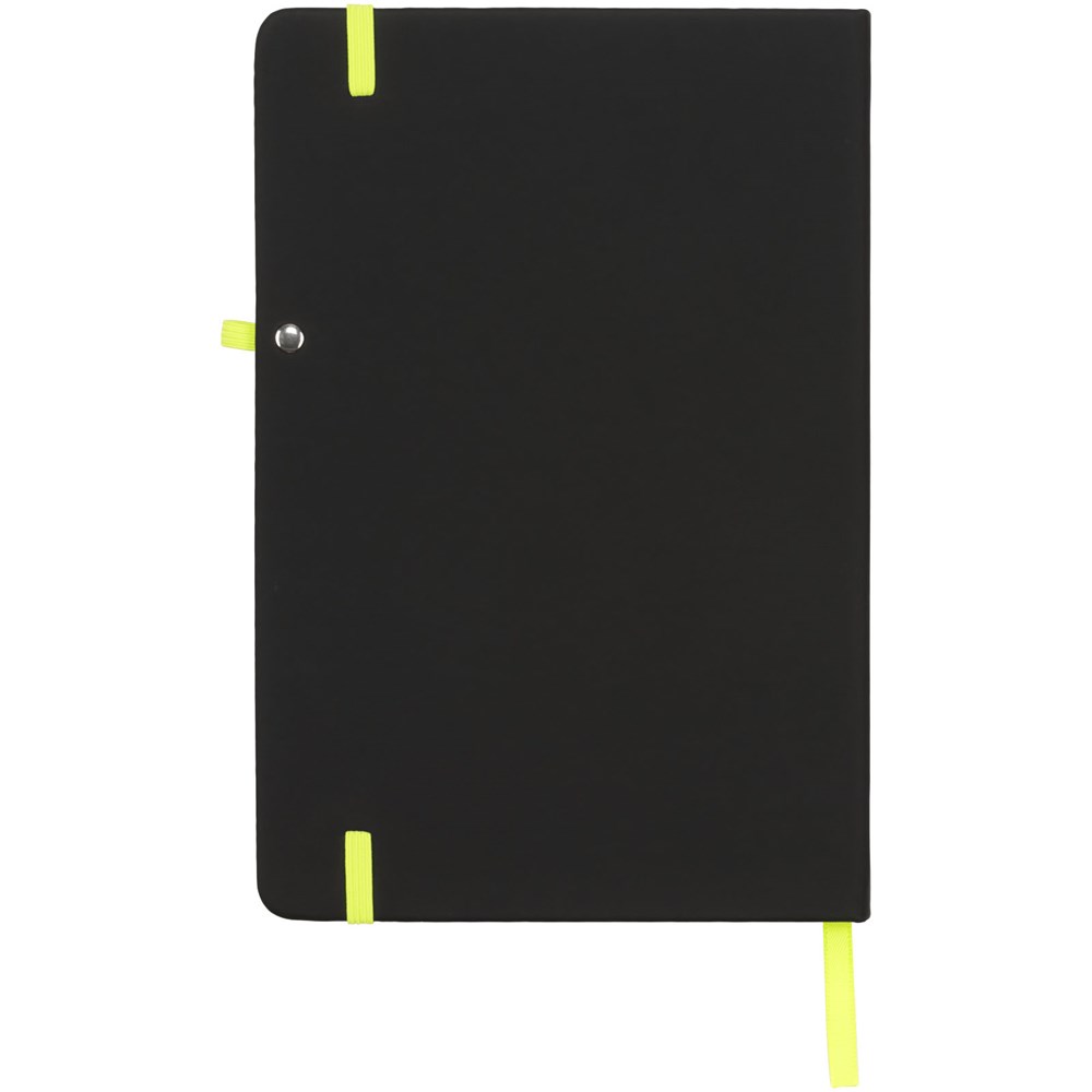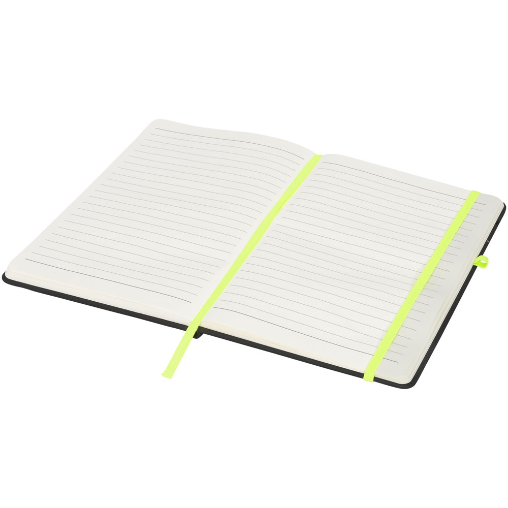 Le carnet de notes Noir est doté d’une couverture en PU noir douce au toucher qui lui confère une finition très agréable. Chaque carnet de notes est doté d’une bande de fermeture colorée, d’une boucle pour stylo et d’un marque-page. Le carnet de notes contient 96 feuilles (70g/m²) de papier ligné crème.