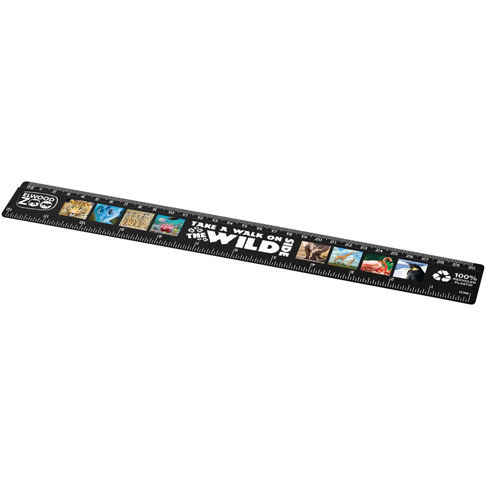 Règle en plastique recyclé solide avec mesures en pouces et en centimètres.