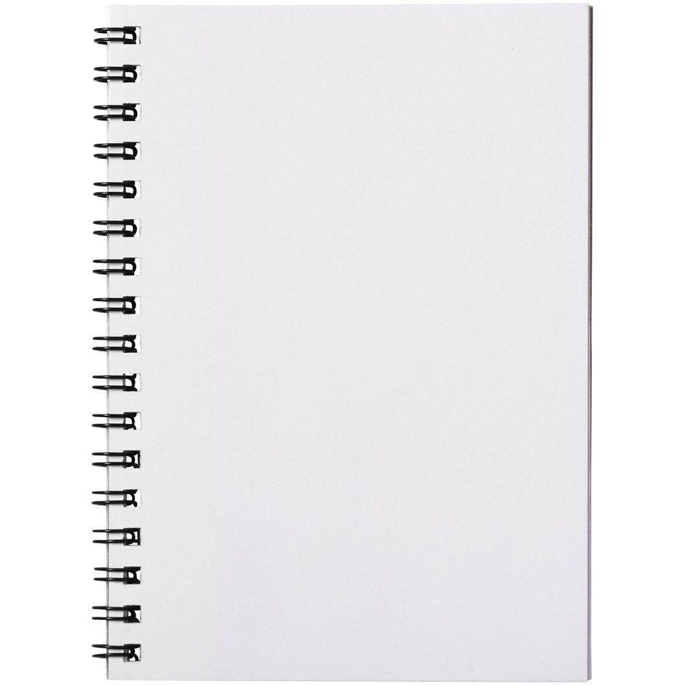 Cahier Desk-Mate® A6 à spirales. Comprend 50 feuilles de papier vierge de 80 g/m², une 1ere de couverture brillante 250 g/m² et une couverture transparente en polypropylène 450 microns. Spirales noires ou blanches. Vous pouvez personnaliser les pages de ce carnet avec n'importe quel motif - que vous souhaitiez du papier ligné, avec des carrés ou des points - tout est possible !