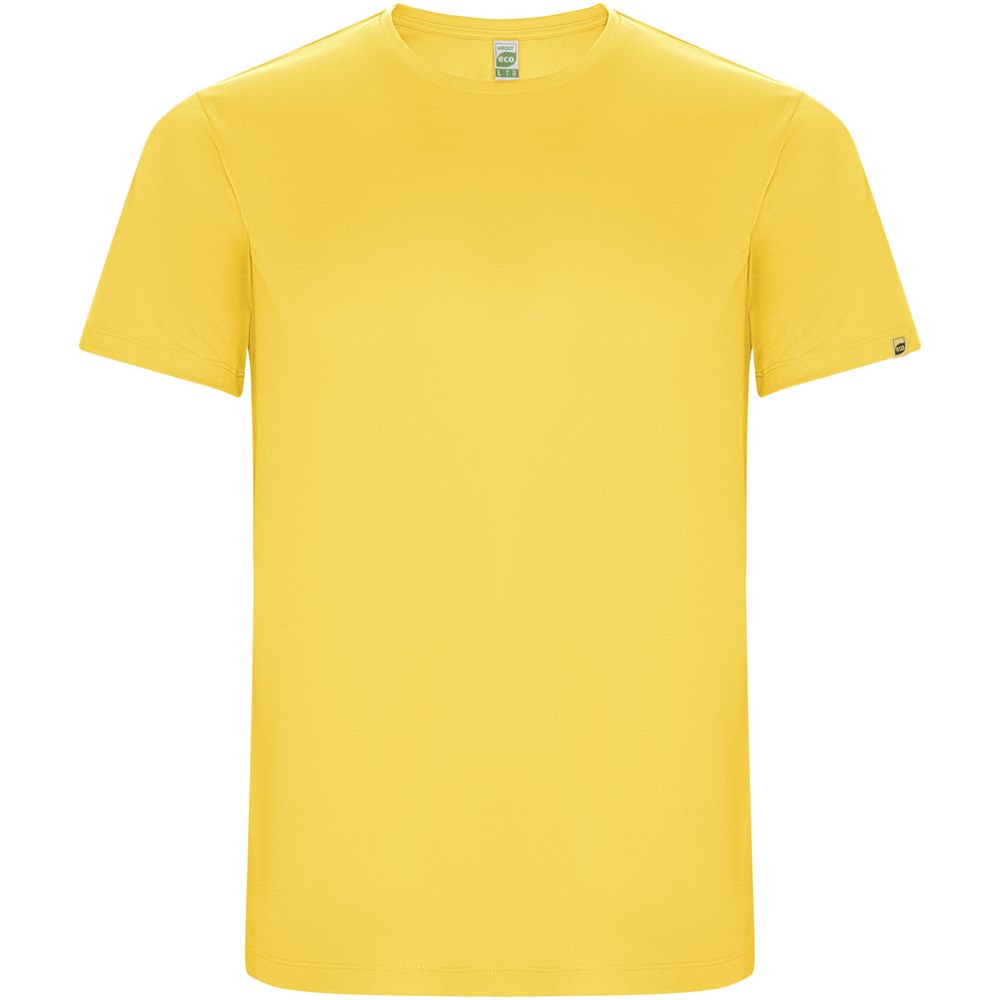 T-shirt technique à manches courtes en polyester recyclé CONTROL-DRY. Col rond avec coutures recouvertes assorties. Étiquette logo ECO sur la manche. Emballage en matière recyclée. Étiquette ECO détachable. Emballage en matière recyclée. Tissu technique. Le mannequin mesure 115 cm et porte la taille 5/6.