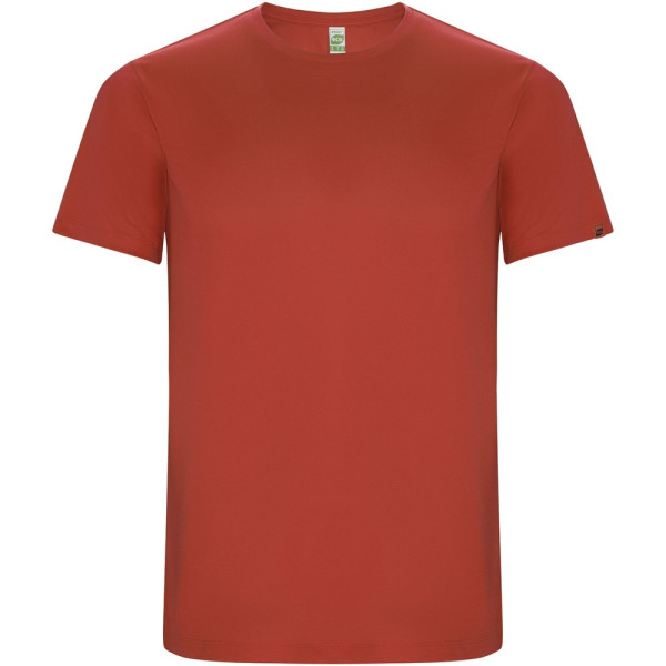 T-shirt technique à manches courtes en polyester recyclé CONTROL-DRY. Col rond avec coutures recouvertes assorties. Étiquette logo ECO sur la manche. Emballage en matière recyclée. Étiquette ECO détachable. Emballage en matière recyclée. Tissu technique. Le mannequin mesure 115 cm et porte la taille 5/6.