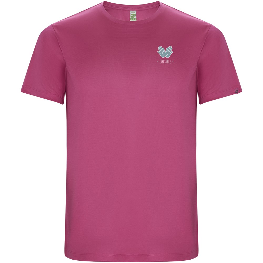 T-shirt technique à manches courtes en polyester recyclé CONTROL-DRY. Col rond avec coutures recouvertes assorties. Étiquette logo ECO sur la manche. Emballage en matière recyclée. Étiquette ECO détachable. Emballage en matière recyclée. Tissu technique. Le mannequin mesure 115 cm et porte la taille 5/6.