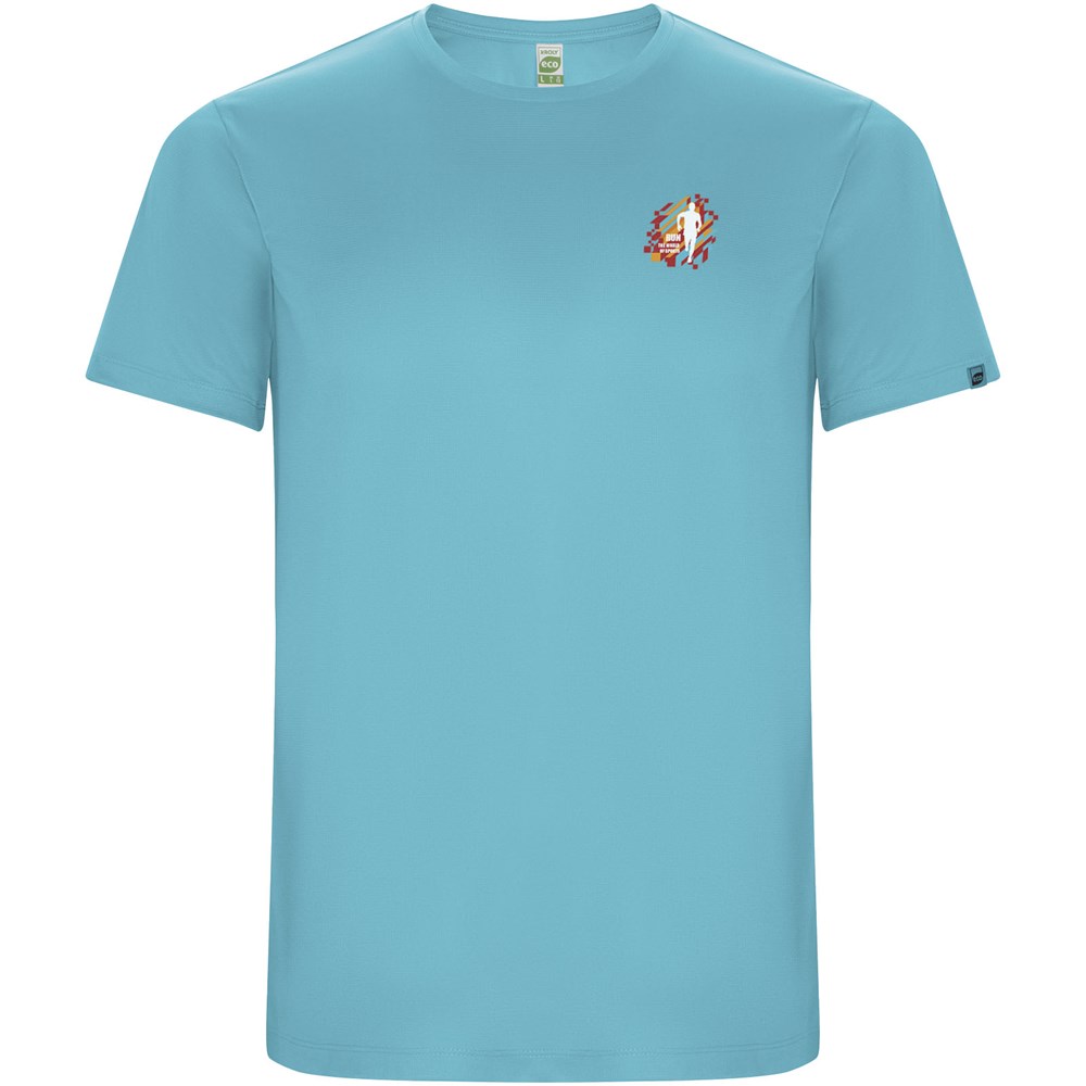 T-shirt technique à manches courtes en polyester recyclé CONTROL-DRY. Col rond avec coutures recouvertes assorties. Étiquette logo ECO sur la manche. Emballage en matière recyclée. Étiquette ECO détachable. Emballage en matière recyclée. Tissu technique. Le mannequin mesure 115 cm et porte la taille 5/6.