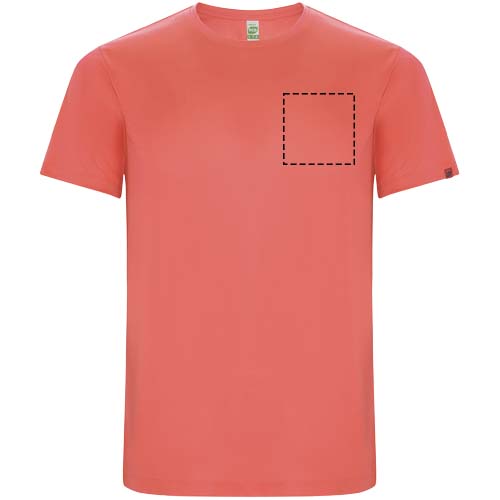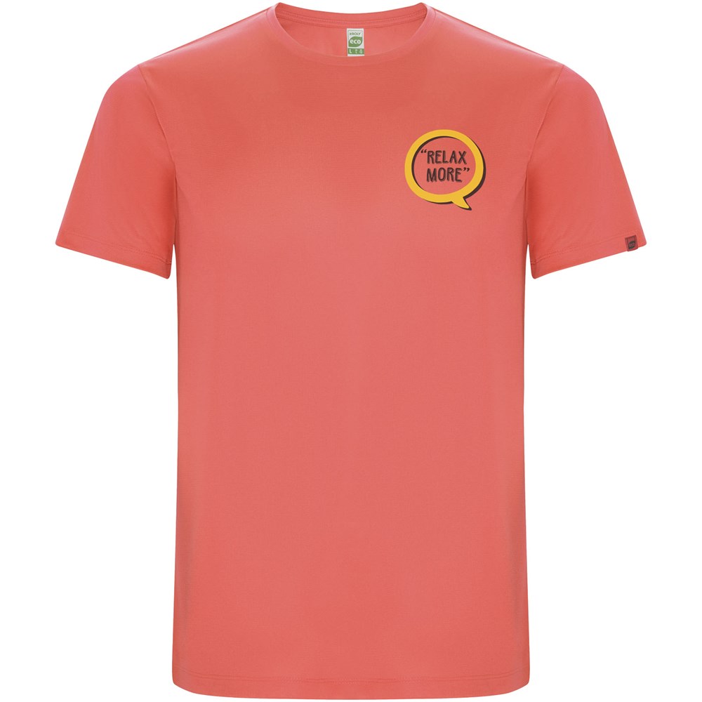 T-shirt technique à manches courtes en polyester recyclé CONTROL-DRY. Col rond avec coutures recouvertes assorties. Étiquette logo ECO sur la manche. Emballage en matière recyclée. Étiquette ECO détachable. Emballage en matière recyclée. Tissu technique. Le mannequin mesure 180 cm et porte la taille M.