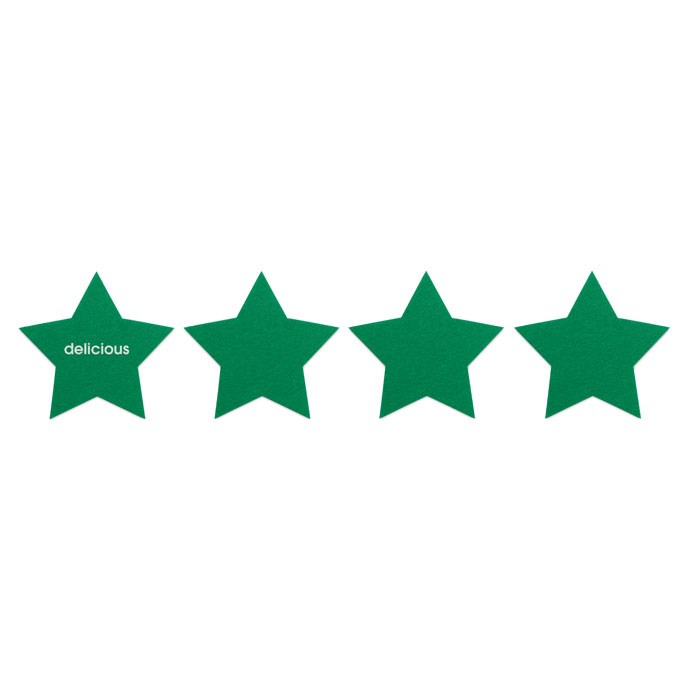 Lot de 4 sous-verres en feutre RPET en forme d'étoile présentés dans une boîte kraft.plus