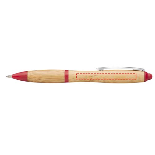 Stylo bille rétractable avec corps en bambou, rehaussé par une agrafe chromée et des finitions en plastique ABS. La couleur du bambou peut varier.