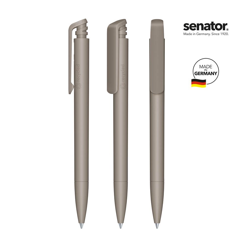 senator® Trento Matt Recycled Balpen, zichtbare onderdelen uit gerecycled materiaal, Matte houder, senator® magic flow G2 langschrijfvulling. Schrijfkleur: blauw of zwart. Lichte oneffenheden in het oppervlak van het gerecyclede materiaal zijn mogelijk.
