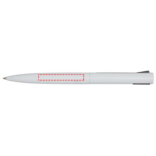 Stylo bille dont le corps supérieur est en plastique recyclé et la partie inférieure en aluminium recyclé. Le stylo est muni d'un clip métallique à ressort qui permet de l'accrocher à des objets plus épais tels que des sacs ou des cahiers. Le clip se referme avec un clic audible. Couleur d’encre : Noire. Longueur d'écriture : 1 000 mètres. Taille de la pointe : 1,0 mm.