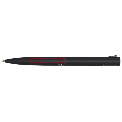 Stylo bille dont le corps supérieur est en plastique recyclé et la partie inférieure en aluminium recyclé. Le stylo est muni d'un clip métallique à ressort qui permet de l'accrocher à des objets plus épais tels que des sacs ou des cahiers. Le clip se referme avec un clic audible. Couleur d’encre : Noire. Longueur d'écriture : 1 000 mètres. Taille de la pointe : 1,0 mm.