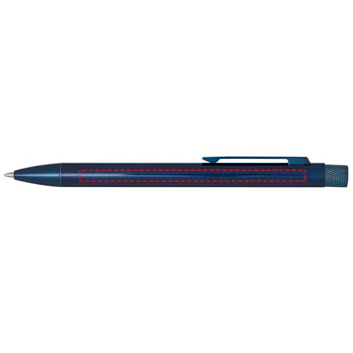 Stylo bille avec revêtement coloré. Le bouton et la pointe sont en laiton, le corps est en laiton recyclé et le clip est en fer. Couleur de l'encre : Bleue. Longueur d'écriture : 1 000 mètres. Taille de la pointe : 1 mm. Livré dans un coffret cadeau.