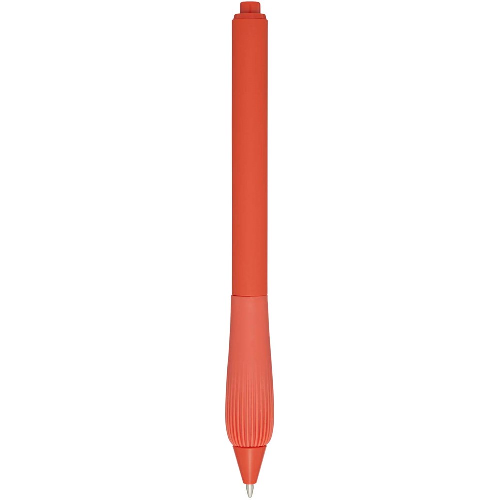 Stylo bille en plastique recyclé avec corps caoutchouté et grip en TPR. Couleur de l'encre : Bleue. Longueur d’écriture : 1 000 mètres. Taille de la pointe : 1,0 mm.