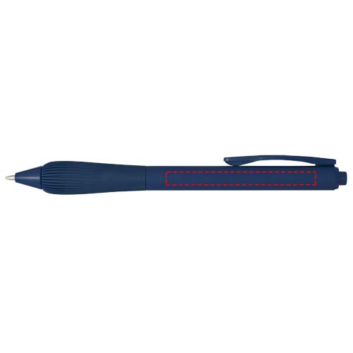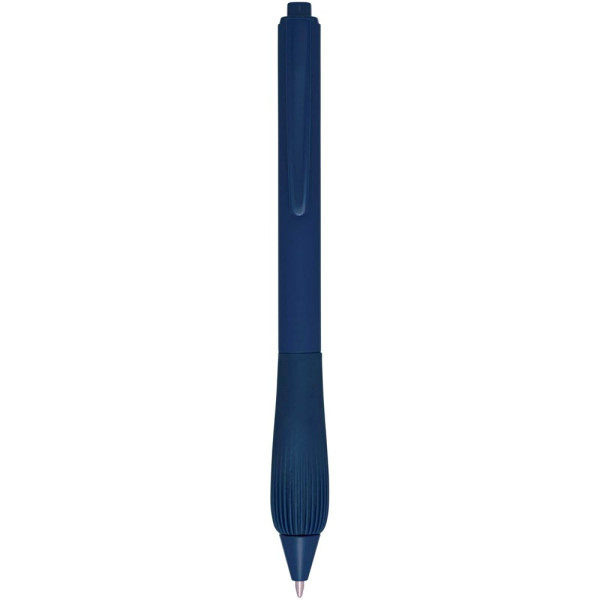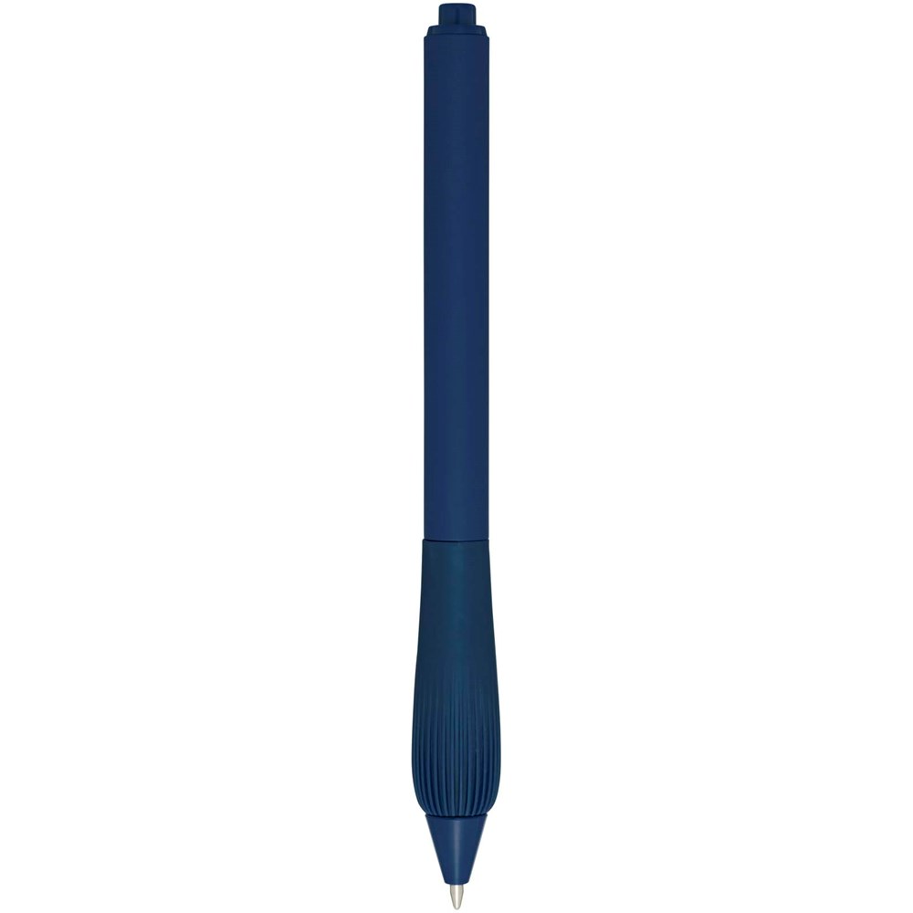 Stylo bille en plastique recyclé avec corps caoutchouté et grip en TPR. Couleur de l'encre : Bleue. Longueur d’écriture : 1 000 mètres. Taille de la pointe : 1,0 mm.