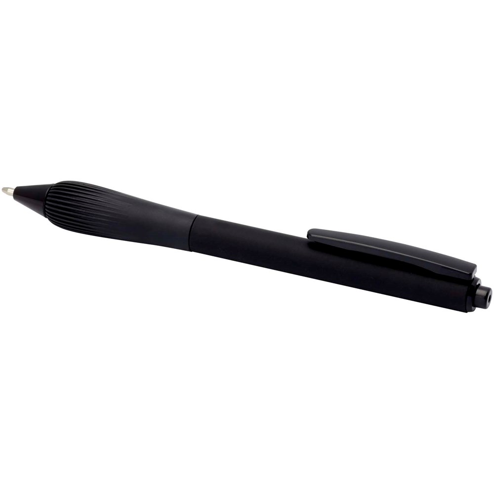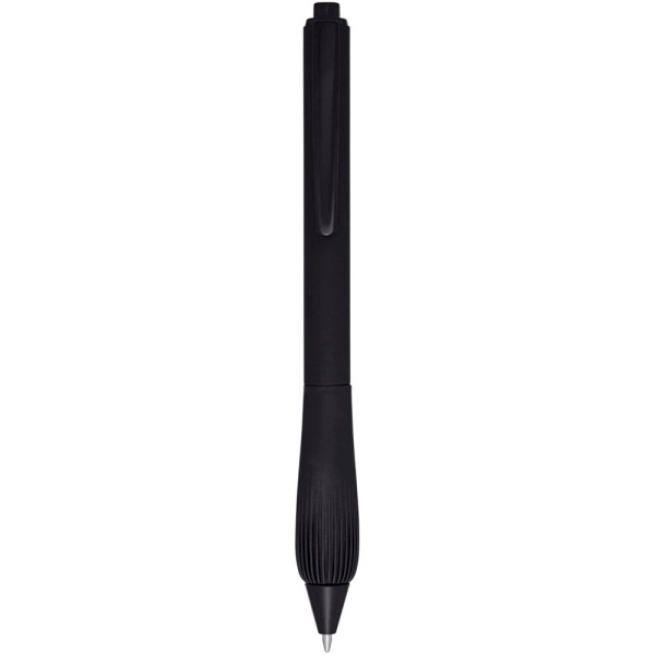 Stylo bille en plastique recyclé avec corps caoutchouté et grip en TPR. Couleur de l'encre : Bleue. Longueur d’écriture : 1 000 mètres. Taille de la pointe : 1,0 mm.