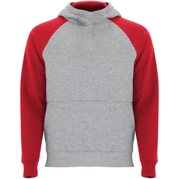 Sweat à capuche unisexe bicolore. Capuche avec col croisé et œillets métalliques. Capuche intérieure contrastée, cordon de serrage et manches raglan. Poche kangourou. Poignets et bas en côte avec élasthanne 1x1. Étiquette détachable.