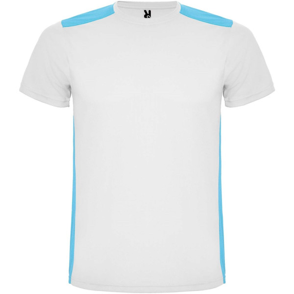 Tissu technique et respirant, facile à sécher. Col ras-du-cou. Confectionné avec deux tissus en polyester sur le dos et les épaules. Tissu œil d’oiseau à l’avant et tissu en maille 3D respirant à l’arrière. Tissu conçu pour absorber l’humidité. Point arrière décoratif en zigzag sur les côtés et les épaules. Patron du dos légèrement plus long. Étiquette détachable.