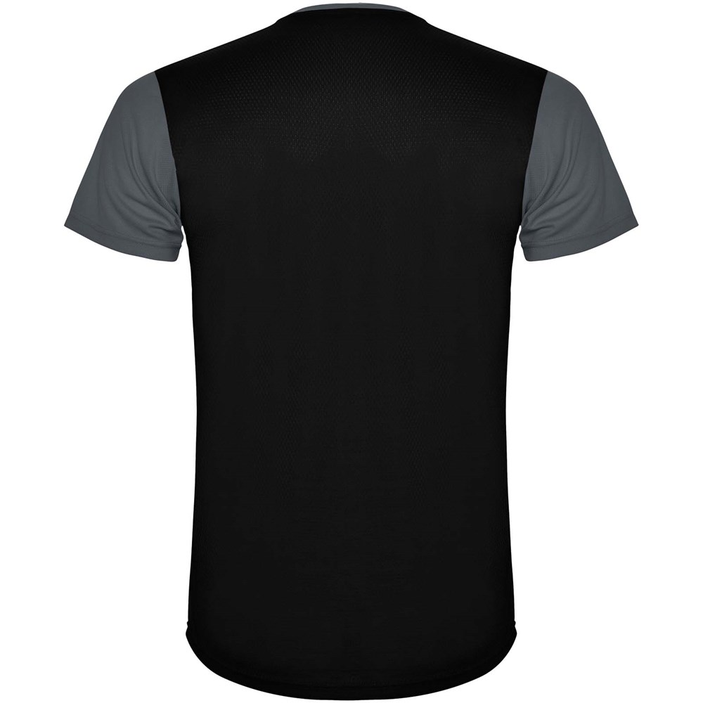 Tissu technique et respirant, facile à sécher. Col ras-du-cou. Confectionné avec deux tissus en polyester sur le dos et les épaules. Tissu œil d’oiseau à l’avant et tissu en maille 3D respirant à l’arrière. Tissu conçu pour absorber l’humidité. Point arrière décoratif en zigzag sur les côtés et les épaules. Patron du dos légèrement plus long. Étiquette détachable.