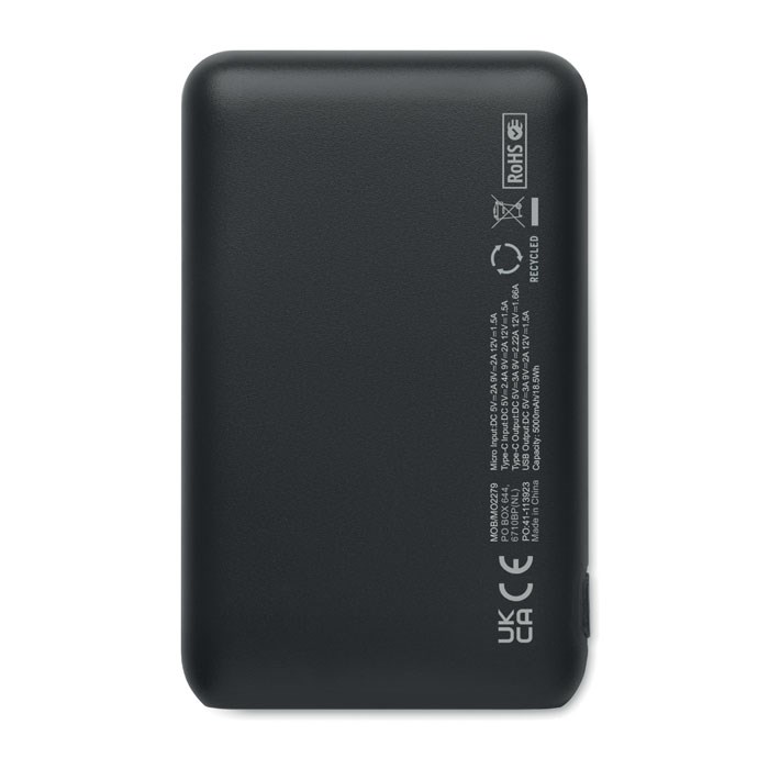 Powerbank 5000 mAh en ABS recyclé. Courant de sortie DC5V/2A 2x entrée/sortie type A et 1x...plus