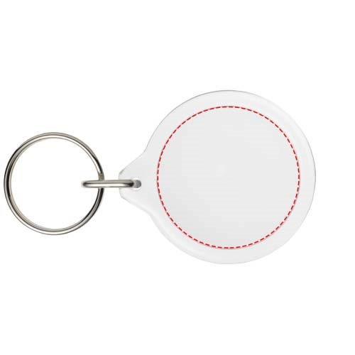 Porte-clés transparent et rond I7 avec anneau fendu en métal. L’anneau en forme de boucle métallique présente un profil plat idéal pour les envois. Diamètre du papier à imprimer pour insertion : 3,3 cm.