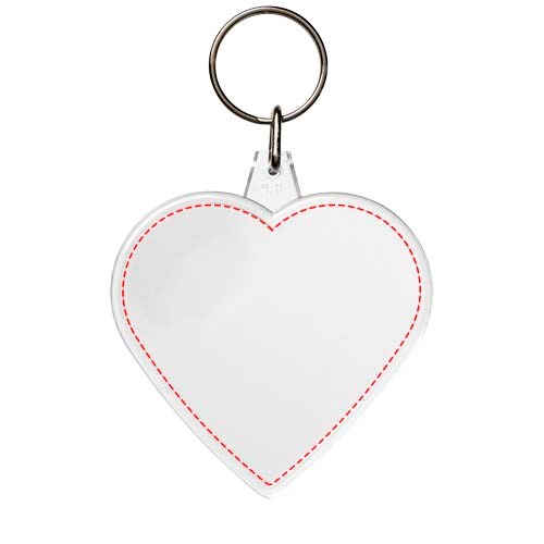 Porte-clés transparent en forme de cœur avec anneau fendu en métal. L’anneau en forme de boucle...plus