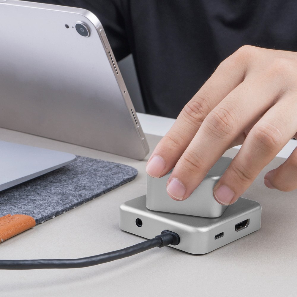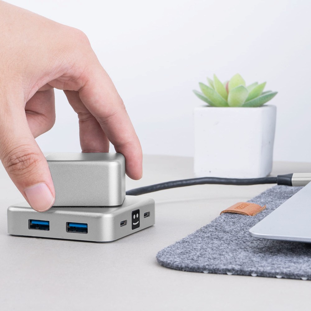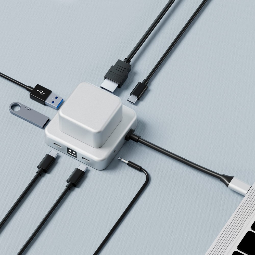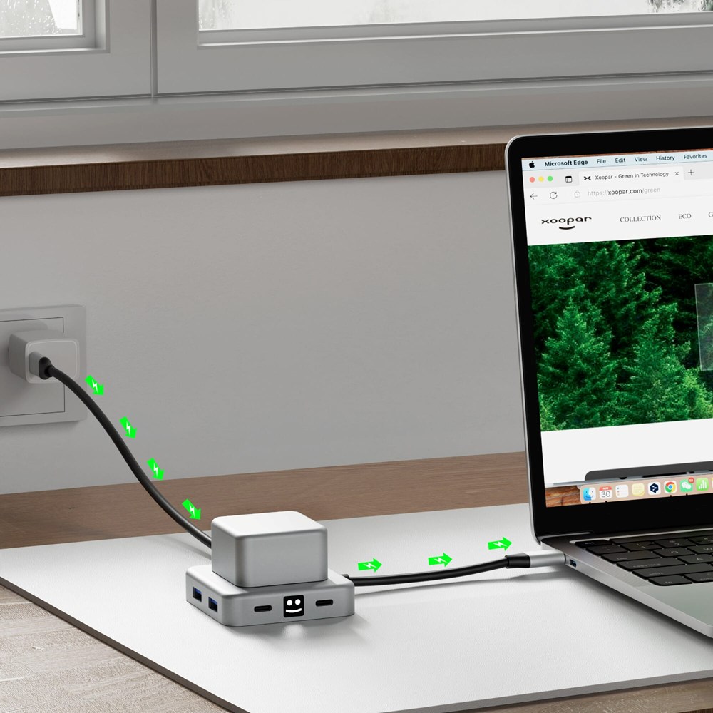 Aucun compromis ici ! Notre hub est fabriqué à partir d'aluminium recyclé, offre une rotation anti-stress, prend en charge jusqu'à 100 W de charge d'ordinateur portable PD et dispose de plusieurs ports - 2 USB-A, 2 USB-C, HDMI et un port audio. Élevez votre connectivité de manière durable ! Les produits Xoopar ne peuvent pas être vendus en France et en Espagne.