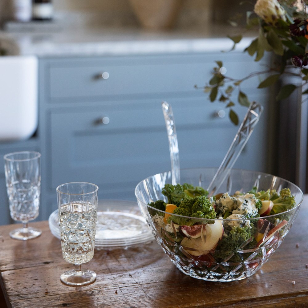 Ce magnifique saladier a l'aspect d'un verre de cristal exclusif, mais il est fabriqué en plastique, ce qui le rend beaucoup plus durable. C'est un saladier idéal pour toutes les occasions où l'on veut une table attrayante mais où l'on a besoin d'une vaisselle résistante : sur le bateau, dans la caravane, à la maison sur le balcon, ou même sur le canapé devant la télévision le vendredi soir, comme saladier pour le goûter des enfants.