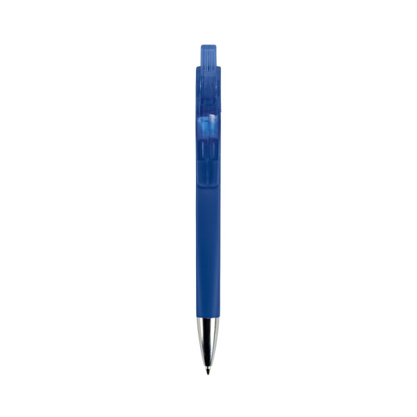 Stylo bille design Toppoint. Ce stylo avec pointe en métal est équipé d’une cartouche Jumbo pouvant écrire jusqu’à 4.5km. Finition soft touch et clip transparent. Ecriture bleue.