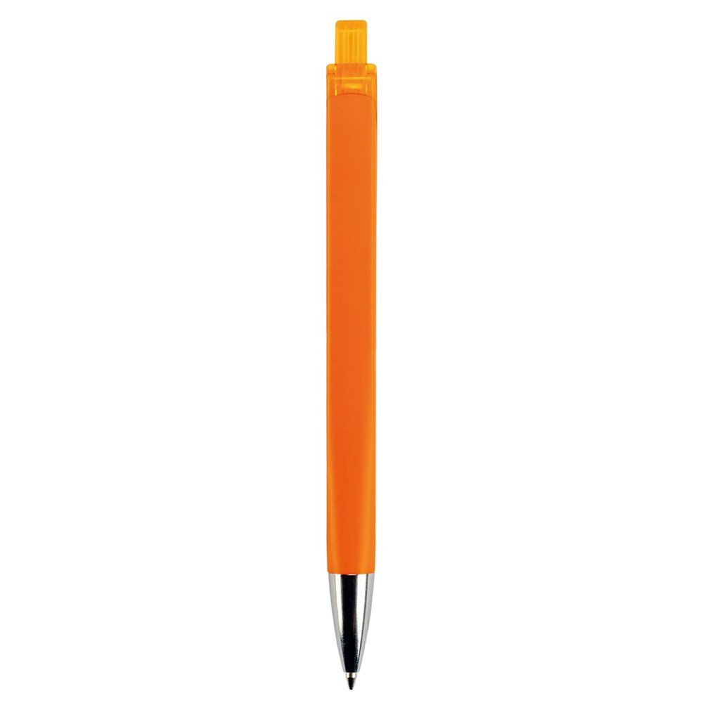 Stylo bille design Toppoint. Ce stylo avec pointe en métal est équipé d’une cartouche Jumbo pouvant écrire jusqu’à 4.5km. Finition soft touch et clip transparent. Ecriture bleue.