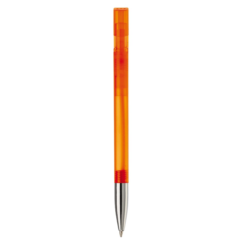 Stylo bille designed by Toppoint avec corps transparent, pointe métal et clip courbé. Avec cartouche encre bleue Maxi Refill Jumbo. Made in Germany.