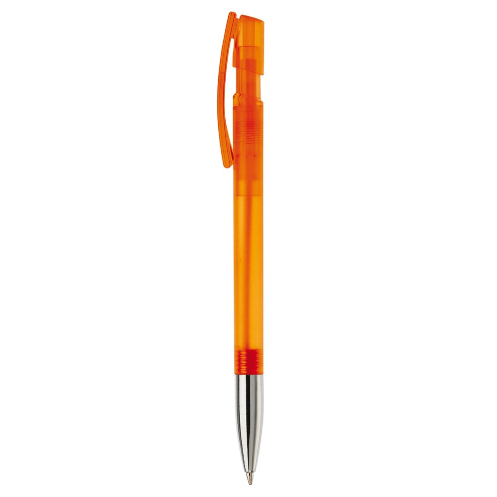 Stylo bille designed by Toppoint avec corps transparent, pointe métal et clip courbé. Avec...plus
