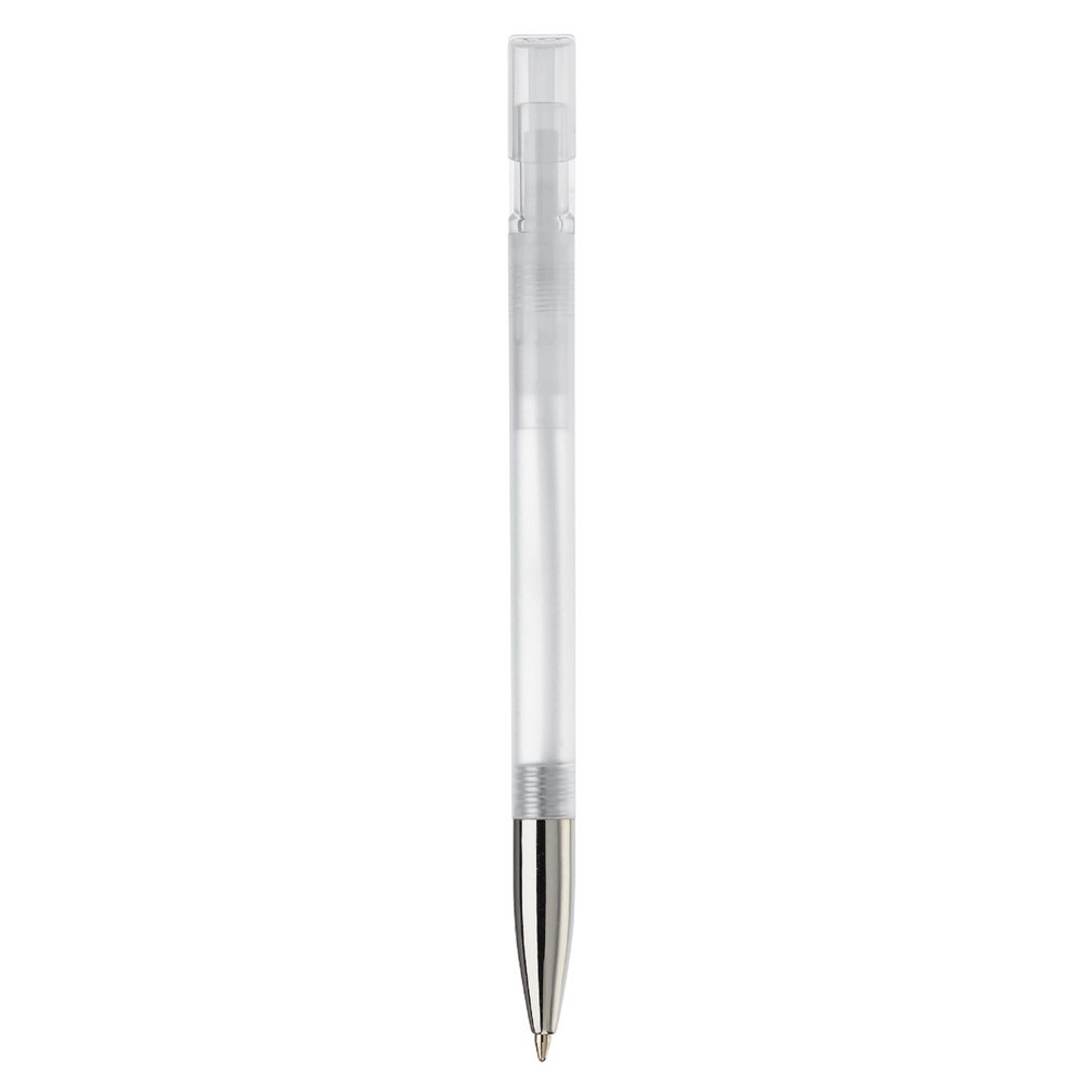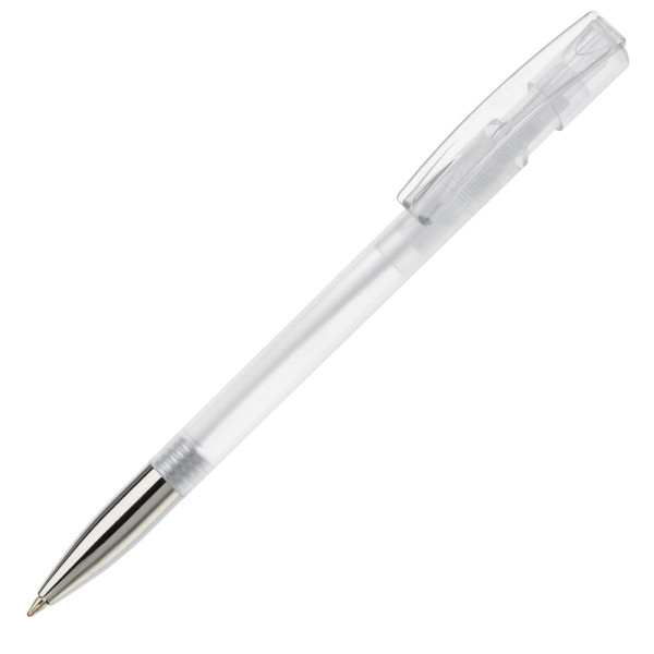 Stylo bille designed by Toppoint avec corps transparent, pointe métal et clip courbé. Avec...plus