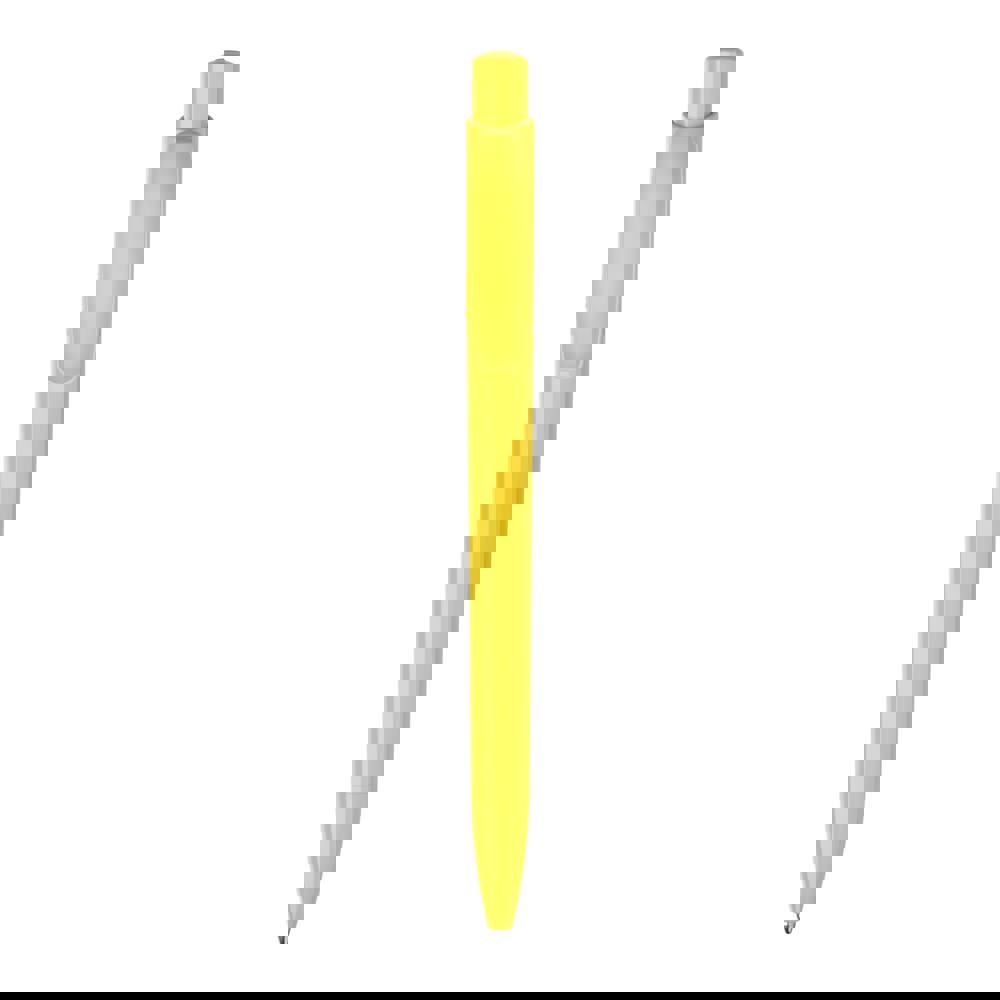 Le stylo bille Kamal possède une grande surface de marquage sur le clip et sur le corps. Corps et bouton poussoir blancs, clip coloré. Sa cartouche X20 écrit jusqu’à 2.5km, écriture par défaut bleue Le stylo est fabriqué en Europe en plastique ABS. Les combinaisons de couleurs pour ce stylo sont possibles à partir de 5 000 pièces.