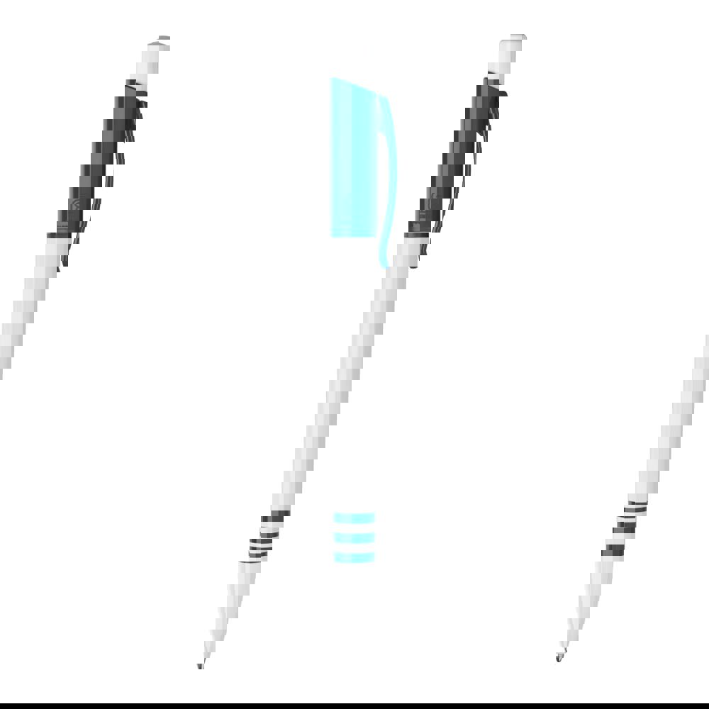 Le stylo bille Tropic possède une grande surface de marquage sur le clip et sur le corps. Corps et bouton poussoir blancs, clip coloré. Les trois anneaux sur corps sont de la même couleur que le clip. Sa cartouche Jumbo écrit jusqu’à 4.5km, écriture par défaut bleue. Le stylo est fabriqué en Europe en plastique ABS. À partir de 5.000 pièces, vous pouvez choisir vos propres couleurs.