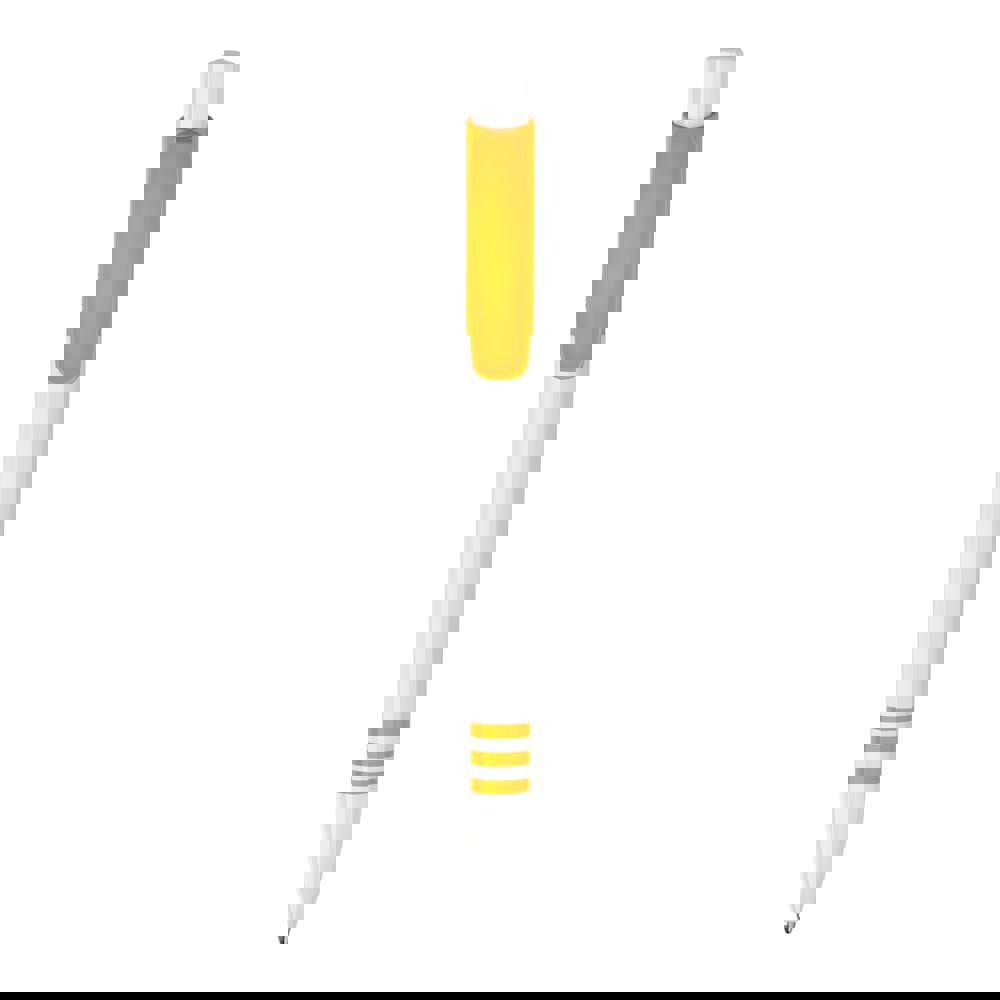 Le stylo bille Tropic possède une grande surface de marquage sur le clip et sur le corps. Corps et bouton poussoir blancs, clip coloré. Les trois anneaux sur corps sont de la même couleur que le clip. Sa cartouche Jumbo écrit jusqu’à 4.5km, écriture par défaut bleue. Le stylo est fabriqué en Europe en plastique ABS. À partir de 5.000 pièces, vous pouvez choisir vos propres couleurs.
