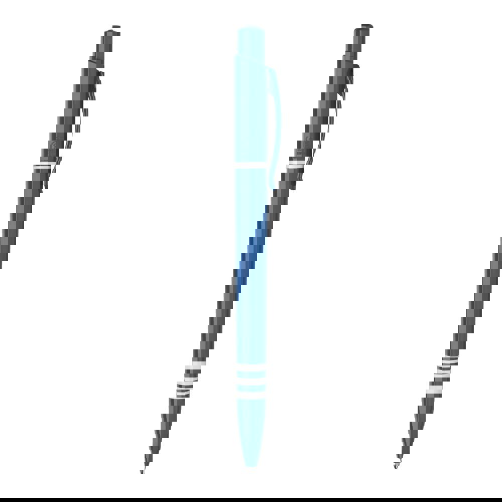Le stylo bille Tropic possède une grande surface de marquage sur le clip et sur le corps. Corps, bouton poussoir et clip colorés. Les trois anneaux sur corps sont de la même couleur que le clip. Sa cartouche Jumbo écrit jusqu’à 4.5km, écriture par défaut bleue. Le stylo est fabriqué en Europe en plastique ABS. À partir de 5.000 pièces, vous pouvez choisir vos propres couleurs.
