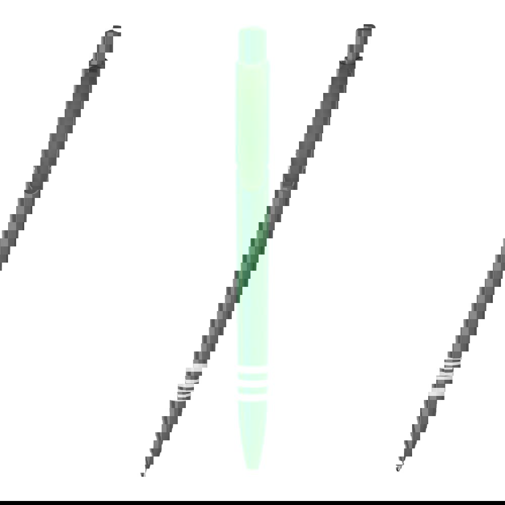 Le stylo bille Tropic possède une grande surface de marquage sur le clip et sur le corps. Corps, bouton poussoir et clip colorés. Les trois anneaux sur corps sont de la même couleur que le clip. Sa cartouche Jumbo écrit jusqu’à 4.5km, écriture par défaut bleue. Le stylo est fabriqué en Europe en plastique ABS. À partir de 5.000 pièces, vous pouvez choisir vos propres couleurs.