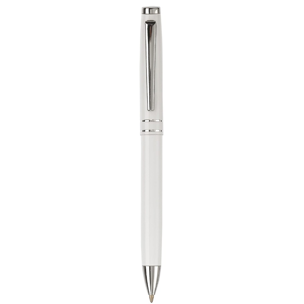 Set d'écriture métal avec ce stylo bille et stylo roller. Stylo bille avec mécanisme twist. Stylo roller avec capuchon.