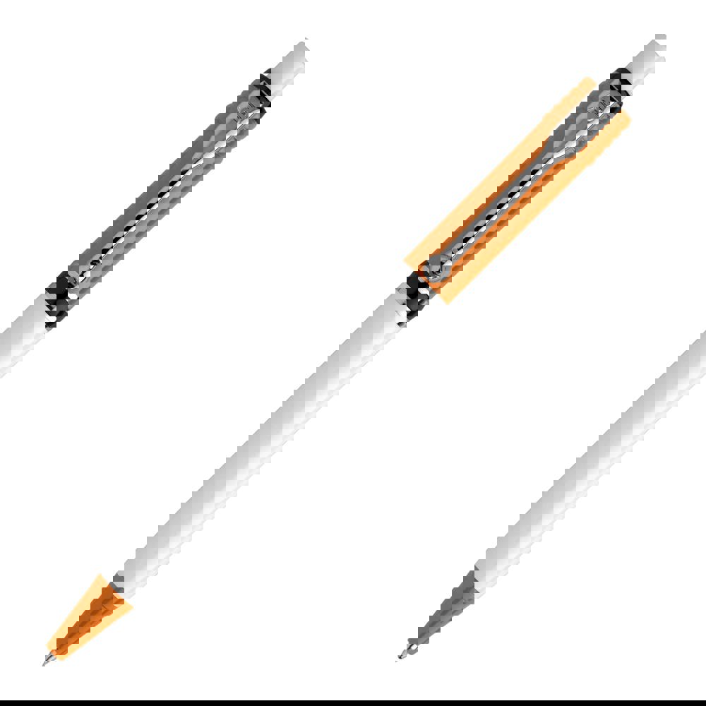 L'un des modèles les plus populaires de Stilolinea est le stylo à bille Raja de couleur opaque avec corps blanc, pointe et un anneau colorés. Le stylo est équipé avec une cartouche Jumbo pouvant écrire jusqu’à 4.5km. Le stylo est fabriqué en Europe en plastique ABS. À partir de 5.000 pièces, vous pouvez choisir vos propres couleurs.