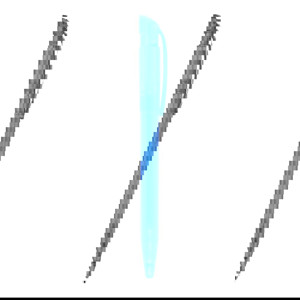 Stylo bille moderne avec clip courbé, fabriqué en R-PET (plastique recyclé). Avec une grande surface d'impression, c'est un bel objet publicitaire. Sa cartouche X20 écrit jusqu’à 2.5km, écriture par défaut bleue. Le stylo est fabriqué en Europe.
