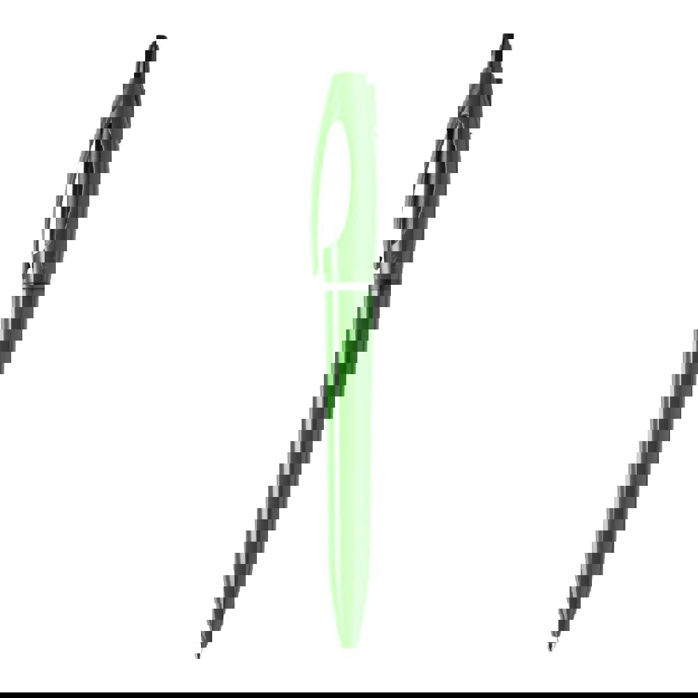 Le S! est un stylo bille fabriqué en Europe, tout en couleurs. Sa cartouche X20 écrit jusqu’à 2.5km, écriture par défaut bleue. Le stylo est fabriqué en Europe en plastique ABS. À partir de 5.000 pièces, vous pouvez choisir vos propres couleurs.
