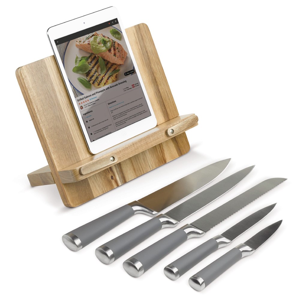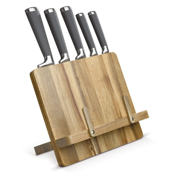 Support livre de cuisine avec 5 couteaux