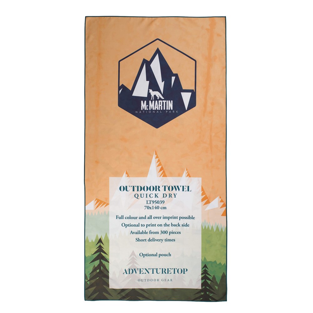 Serviette super confortable en microfibre à séchage rapide (200 g/m2). Prix incluant une impression full couleurs sur une face. Possibilité d'imprimer également le verso en full couleurs. La couleur de la couture peut également être réalisée à vos couleurs.