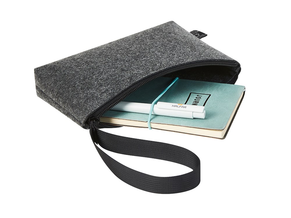 kleine, fijne tas van gerecycled viltmateriaal, ritssluiting, praktische handlusplus