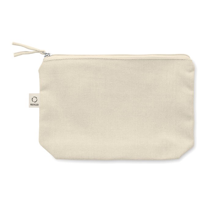 Trousse à cosmétiques et/ou accessoires en tissu recyclé (70% coton recyclé et 30% polyester RPET) avec tirette de fermeture éclair assortie. 320 gr/m². Cet article peut rétrécir après impression.