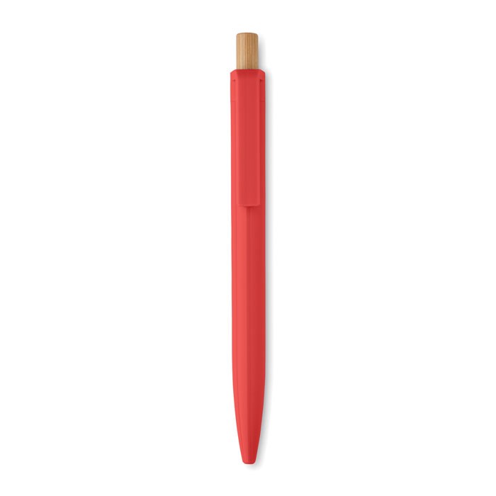 Stylo bille en ABS recyclé avec bouton poussoir en bambou. Encre bleue.
