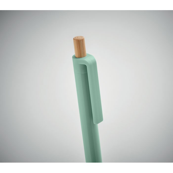 Stylo bille en ABS recyclé avec bouton poussoir en bambou. Encre bleue.plus